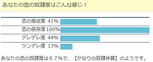 あなたの恋の奴隷度は87%で、【かなりの奴隷体質】のようです。