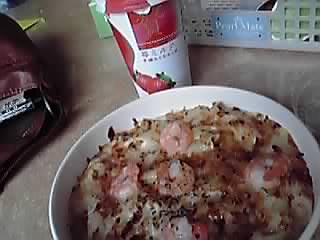 今日はえびグラタンと苺ミルク!
