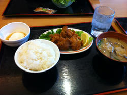 からあげを温泉たまごにつけて食べるんだお