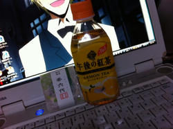 お客さんに午後の紅茶もらって、手伝ってくれた人はお菓子いっぱいくれた!
