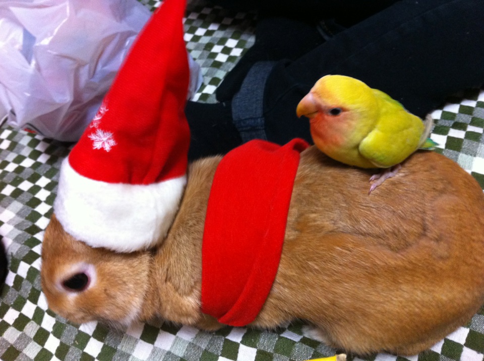 ぽこ汰のうえにインコのった( ∪*>x<)