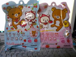 りらっくまの飴ちゃん2袋ももらた~(*´∀`*) イチゴ味とイチゴソーダ味だから、すっごい嬉しい~(*´∀`*)
