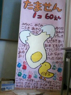 テントはりは男の子に任せて、チラシと看板仕上げたww