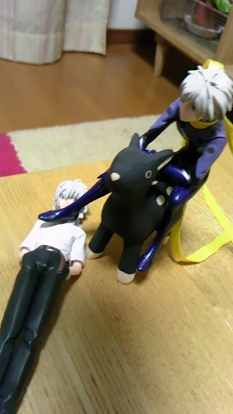 お家においてあったお馬さんの置物にカヲル君のせたり、