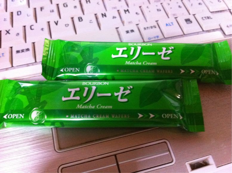 和菓子屋さんの僕にすごくよくしてくれるおばさまが、抹茶味のエリーゼくれたのーん( ∪*>x<)