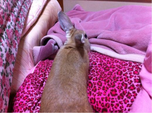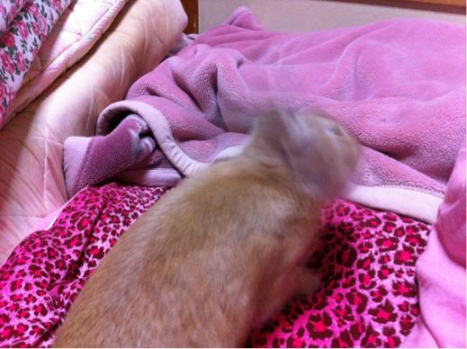 一滴だけ耳の奥に垂らすだけでいいんだけど、一滴垂らしただけでも耳をぶんぶん振って走り廻って、毛づくろいするみたいに後ろ足で耳かいちゃうの。