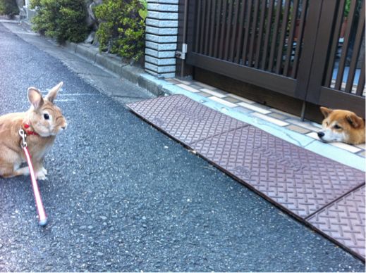 でも、ま、わんちゃんはわんちゃんでぽこ汰が気になるけど、ぽこ汰はわんちゃんがこわくって、ぽこ汰もぽこ汰でわんちゃんのこと少しは気になるみたいなんだよねw