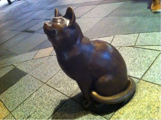 旭川の緑橋通りにあった猫とおじさんの像!